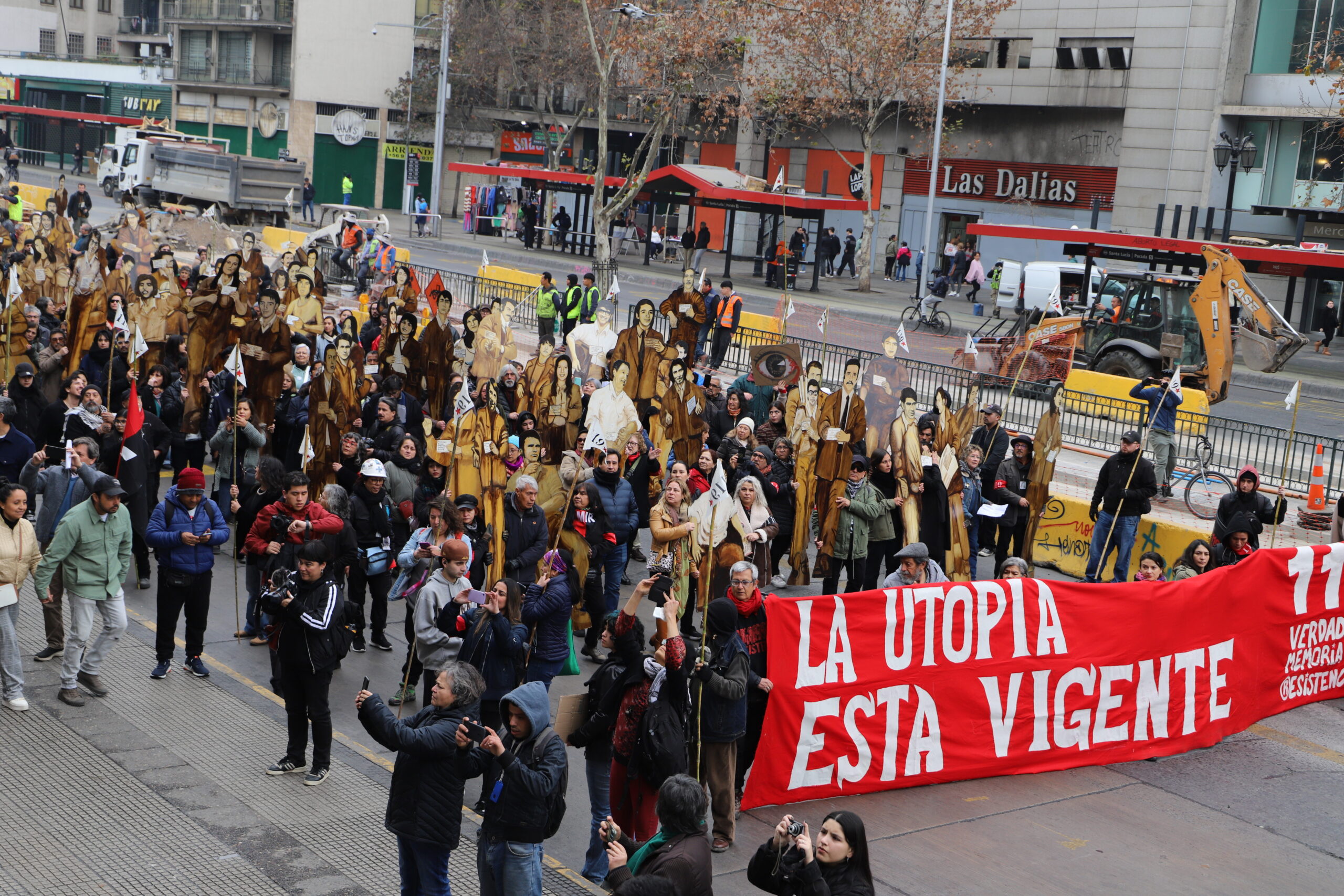 En medio de la marcha, hubo un momento cargado de emoción y fuerza colectiva: se rindió un homenaje especial a los y las compañeras que fueron detenidas, torturadas y desaparecidas en el centro clandestino Irán 3037, uno de los tantos centros de exterminio operados por la DINA. En ese lugar siniestro se escucharon gritos de resistencia, se forjaron convicciones bajo tormento, y se sembró la dignidad que hoy florece en las calles.