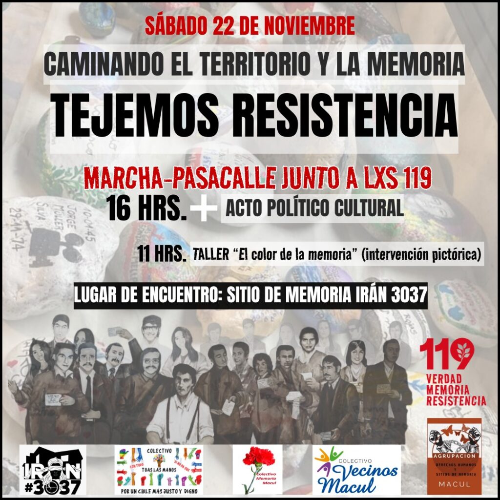 Junto con saludar, compartimos información importante sobre la actividad comunitaria y de memoria que realizaremos el próximo sábado 22 de noviembre, organizada por el Sitio de Memoria Irán 3037 junto a diversas colectividades y agrupaciones locales.