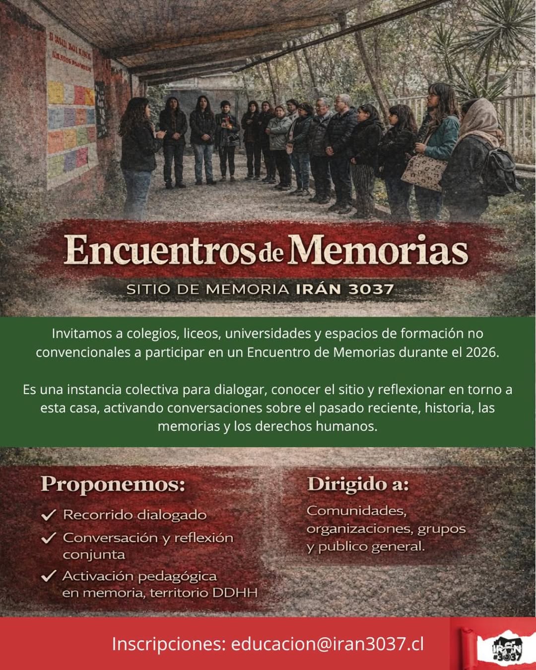 Invitamos a colegios, liceos, universidades y espacios de formación no convencionales a participar en un Encuentro de Memorias durante el 2026.