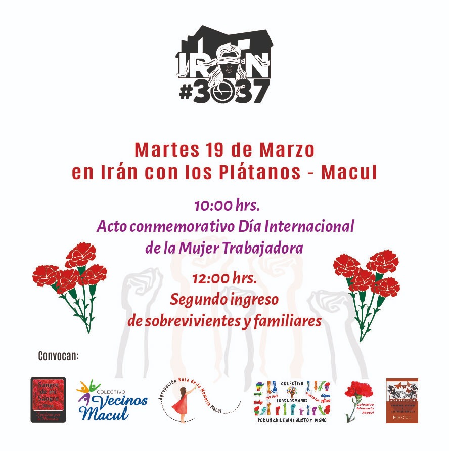 NOTICIAS Invitación a acompañar a sobrevivientes y familiares Editor 14/03/2024 Navegación de entradas Anterior: Mujeres por la Memoria preparadas para marcharSiguiente: Encargada de negocios de Nicaragua visita Ex Centro secreto de secuestro, torturas y exterminio Venda Sexy Noticias relacionadas 2 min de lectura NOTICIAS Invitación Especial: «Mes del Libro» en el Sitio de Memoria Irán 3037 – Un Sábado de Literatura, Memoria y Resistencia Editor 17/04/2026 1 min de lectura NOTICIAS Alejandra Valle: «¿Conoces la historia del asesinato de Alice Meyer en 1985?» Editor 15/04/2026 1 min de lectura NOTICIAS Registro audiovisual del ciclo de cine “Resistir la Justicia”, realizado en el Sitio de Memoria Irán 3037. Editor 13/04/2026