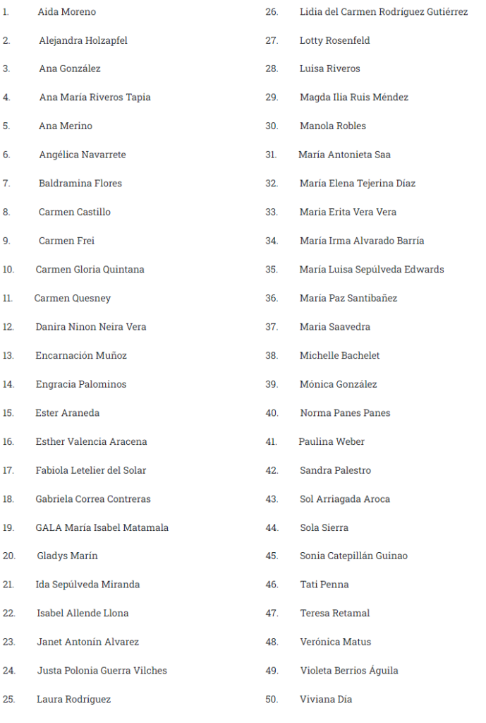 Para conocer las biografías de estas mujeres destacadas se debe ingresar al sitio web 50.cl