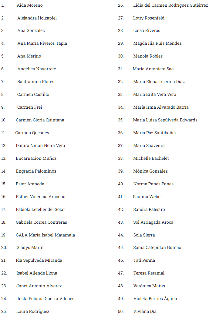 Para conocer las biografías de estas mujeres destacadas se debe ingresar al sitio web 50.cl
