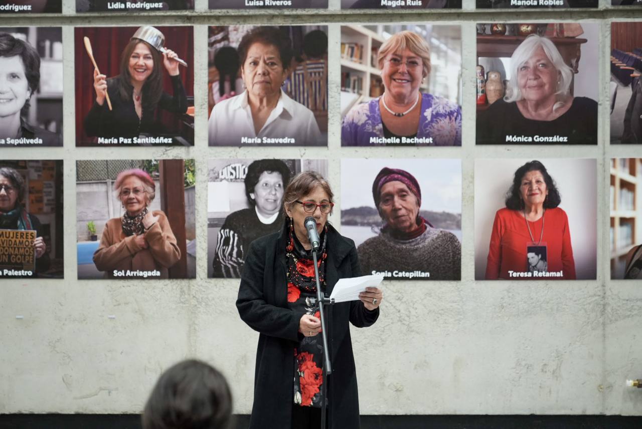“Nuestro homenaje a las mujeres que se incorporaron desde el primer día en su lucha de resistencia en todos los frentes contra la Dictadura. A las que fuimos secuestradas, encarceladas, torturadas, a las que fueron desaparecidas y asesinadas. A las mujeres sobrevivientes que siguieron luchando por recuperar con vida a sus seres queridos a las que se incorporaron a la lucha de la resistencia antidictatorial. Nuestro homenaje a las mujeres jóvenes y niñas que en las marchas estudiantiles dieron lección de integridad”, señaló en su discurso Alejandra Holzapfel, que actualmente es presidenta de la Asociación de Memoria y Derechos Humanos Venda Sexy y que hoy fue destacada en esta exposición.