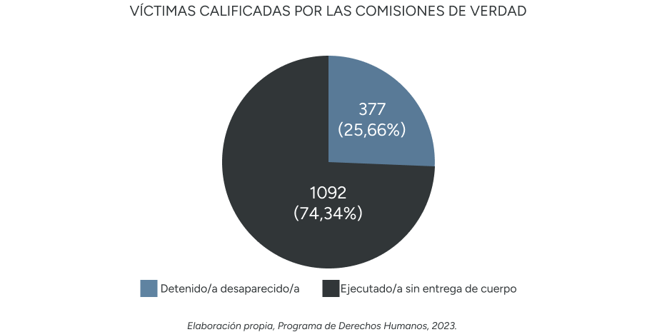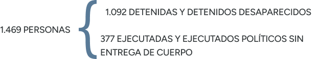 El trabajo de revisión, análisis y valoración de cada caso llegó a la conclusión de que las personas detenidas desaparecidas y ejecutadas políticas sin entrega de cuerpos, durante el período 1973-1990, considera un universo de 1.469 personas, de las cuales 1.092 corresponden a personas detenidas desaparecidas y 377 a personas ejecutadas sin entrega de cuerpos.