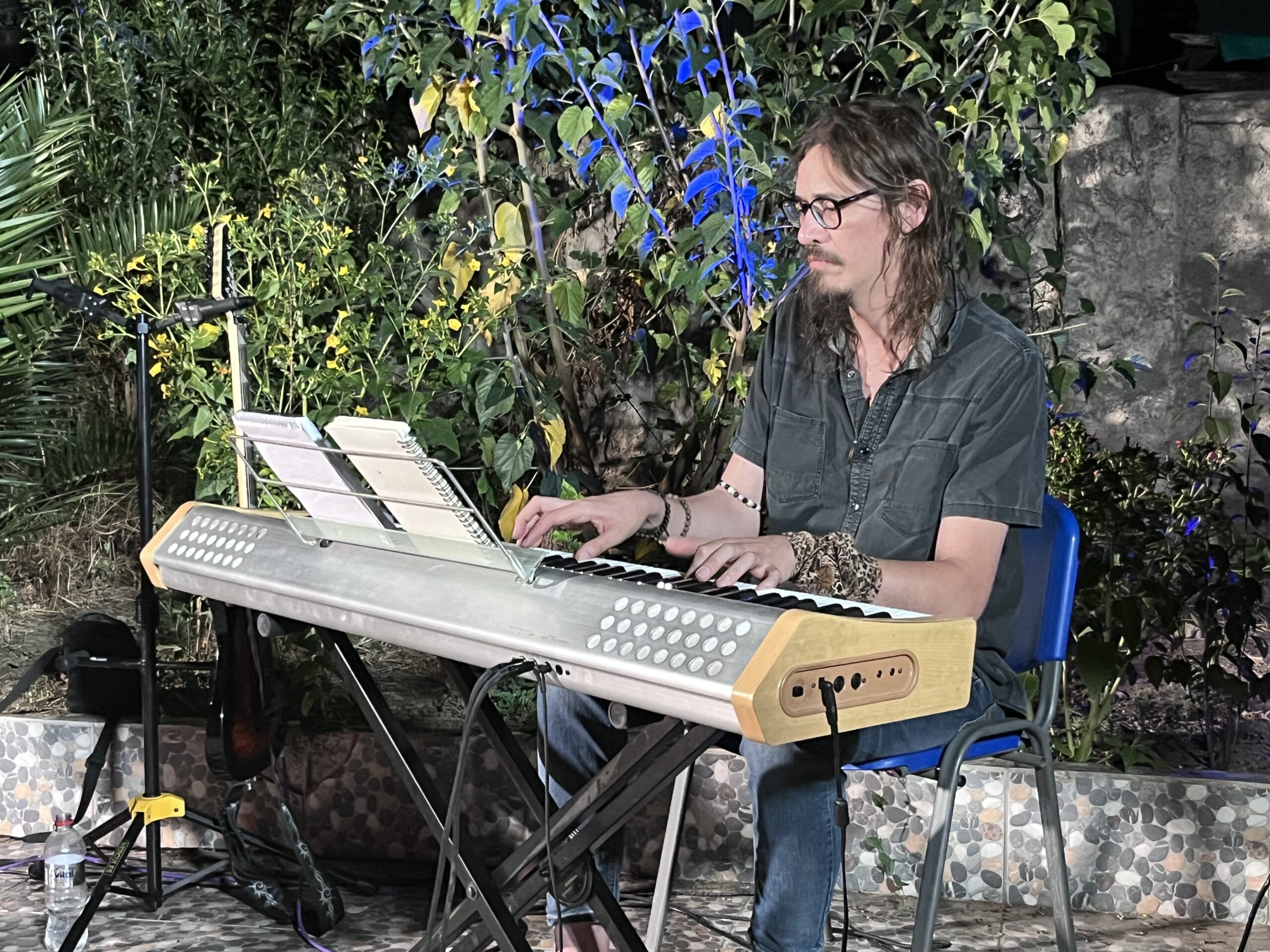 Pablo fue acompañado por Gabriel Zarate en piano y guitarra eléctrica, Maga Barros en Voz y Marcos Almendras en Charango.