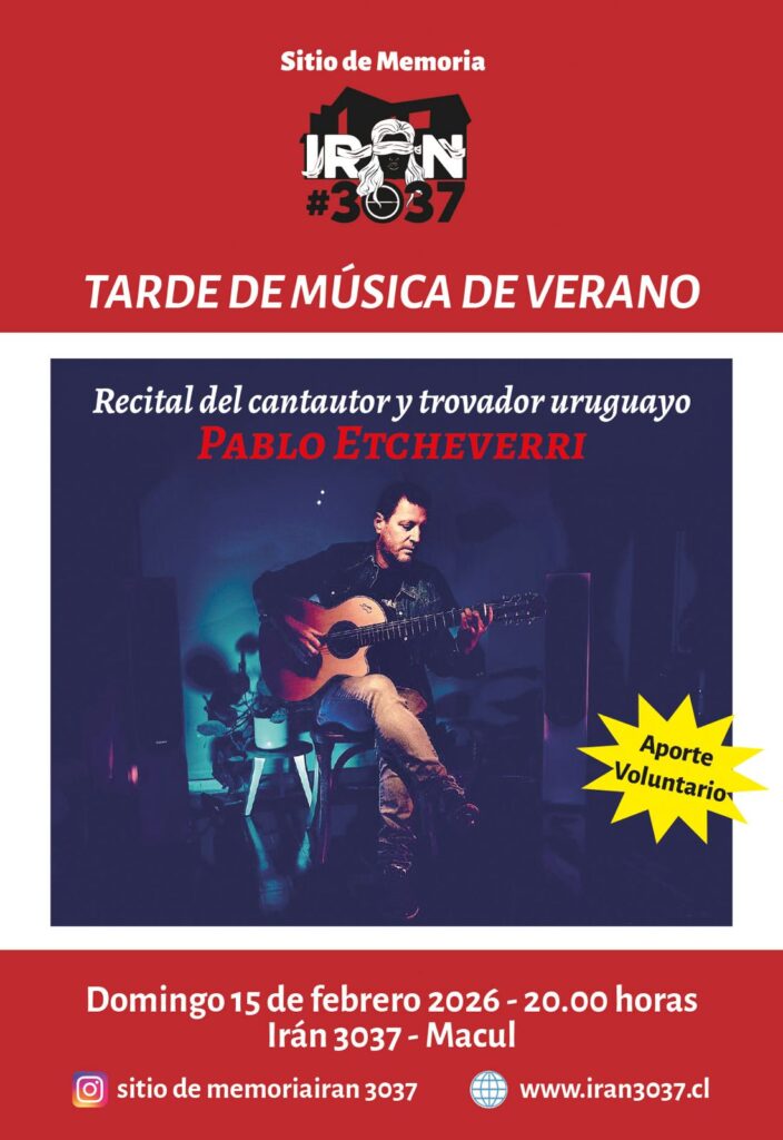 Pablo Etcheverri es un cantautor y trovador uruguayo, nacido en Montevideo y radicado en Progreso, Las Piedras, Canelones. Se le reconoce como una de las voces más auténticas de la nueva trova rioplatense, caracterizándose por una obra que fusiona la canción social con los sonidos folclóricos de Latinoamérica.